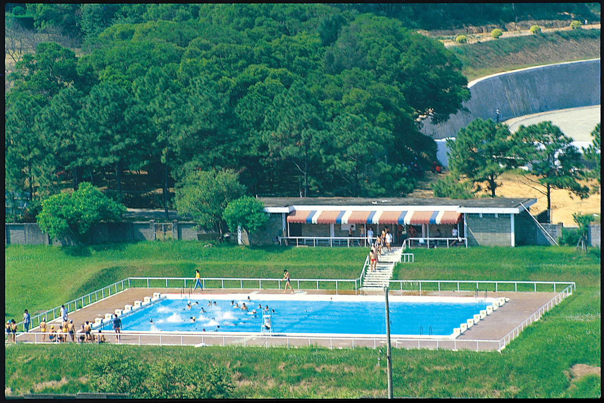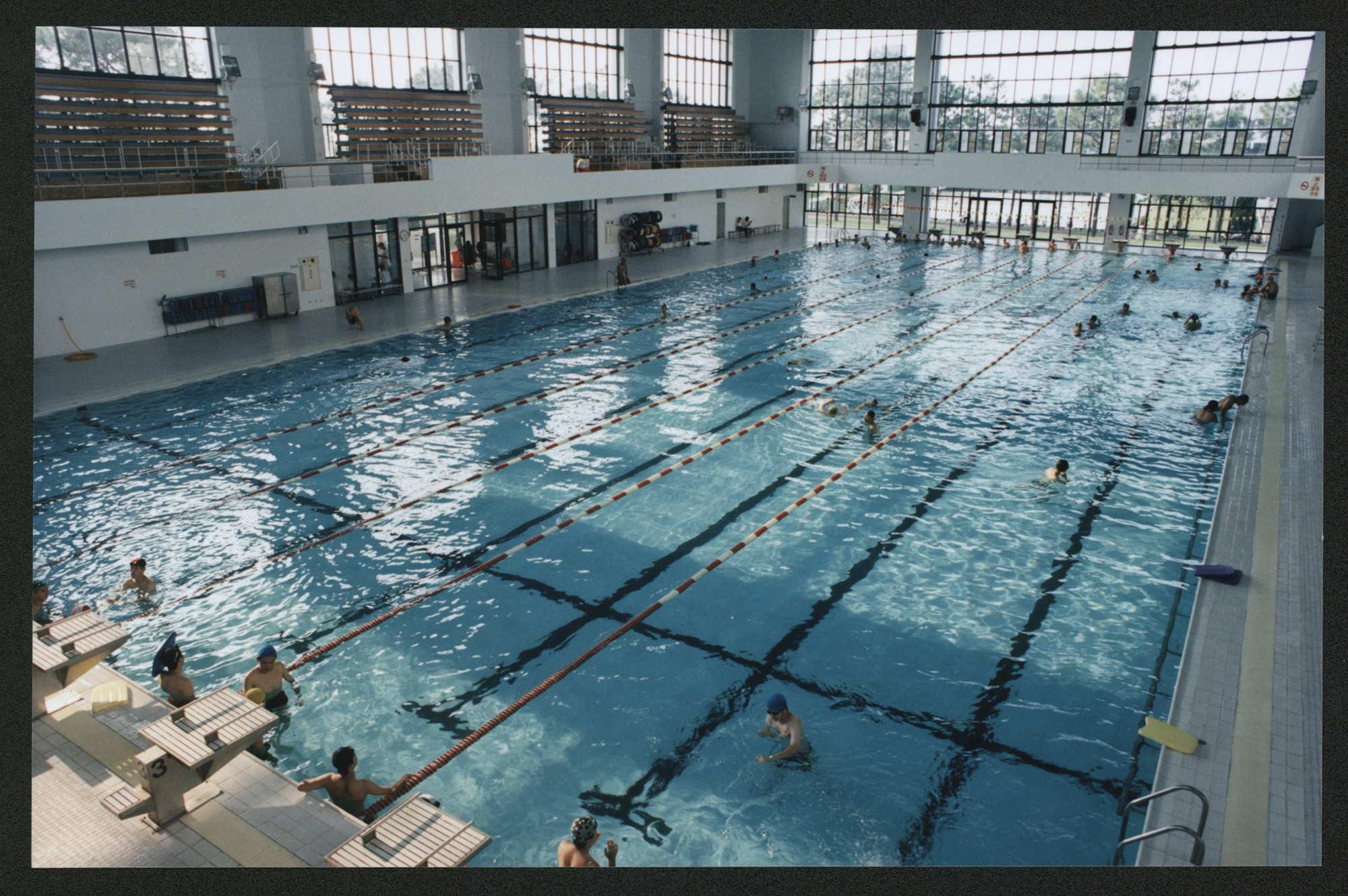 至於1968年興建、竣工的室外游泳池,長25公尺(一說為20公尺)、寬17公尺,共8水道,並設有跳臺,是當時臺灣少有的標準池,水中裝置彩光及夜間照明設備,嘉惠師生晝夜皆可使用。1989年,室外游泳池拆除,原址改建為新體育館(即今體育館),校方另外興建當時新竹地區唯一符合奧運規格的室內溫水游泳池,1993年完工,2017年正式命名為「千紫游泳館」。